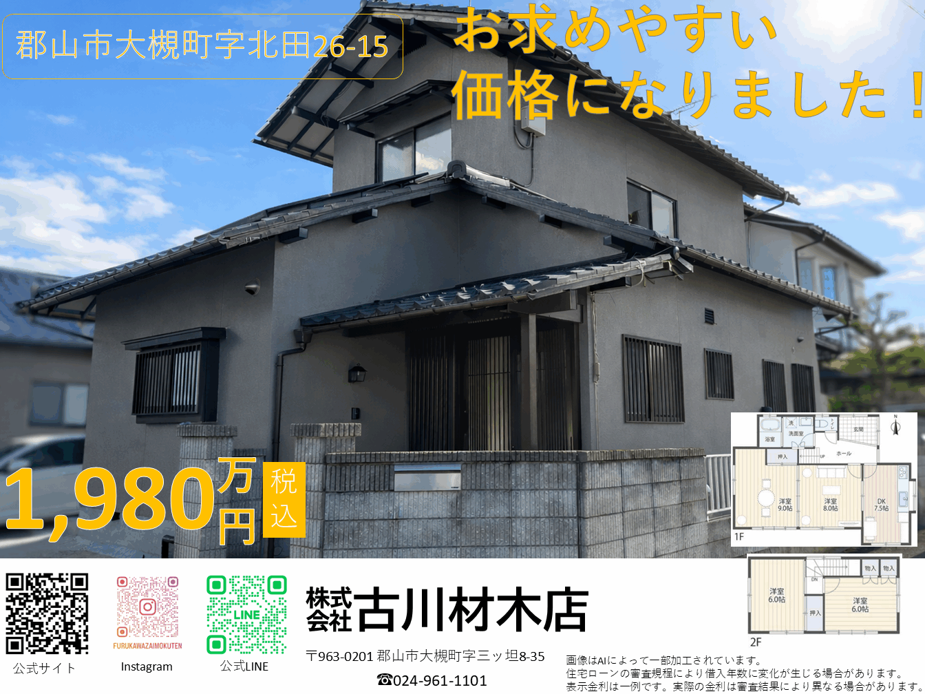 📍 所在地:郡山市大槻町字北田(詳細は物件ページをご覧ください)